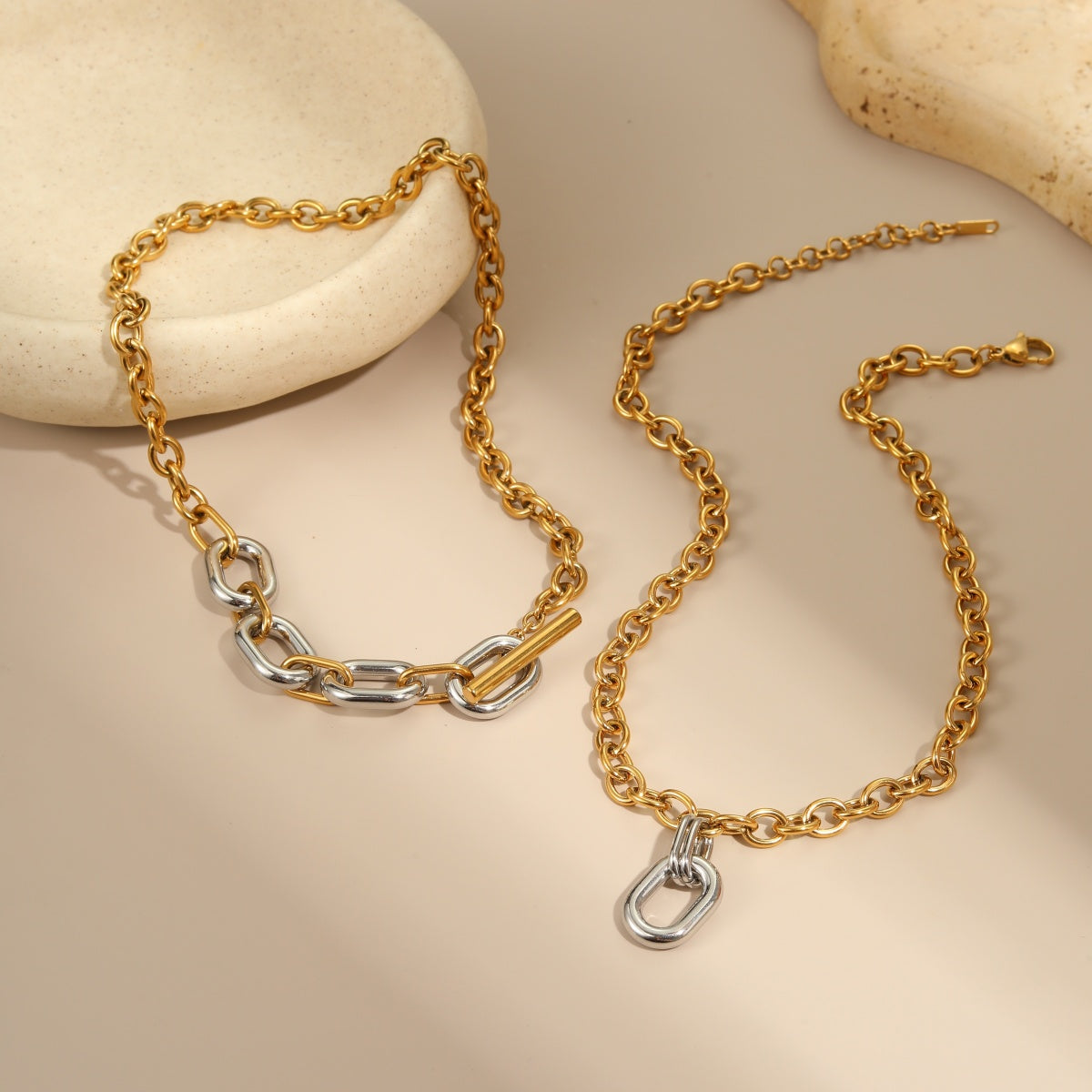Elevate your style with the Dual Harmony Chain Necklace π« β a bold mix of gold and silver tones ππ€. Featuring layered chunky links and a statement pendant π, this piece brings together modern edge and timeless elegance. Perfect for any look β from casual chic to evening glam ππ.