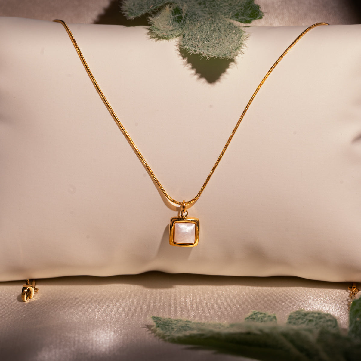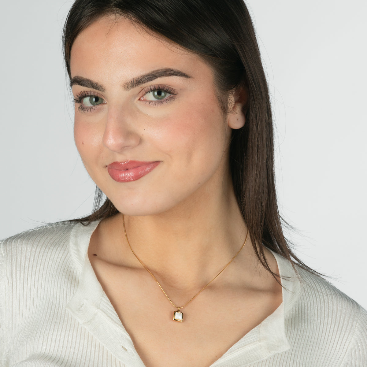 Grace meets simplicity with the Luna Square Pendant Necklace. Featuring a luminous mother-of-pearl stone framed in gold, this necklace captures a soft glow that enhances every neckline. π«
